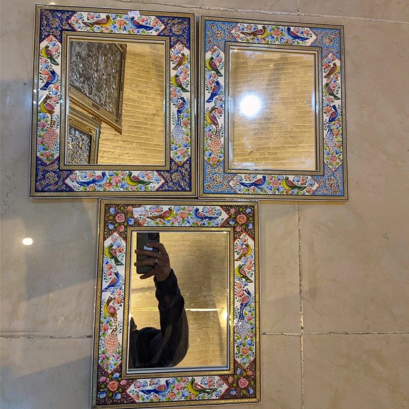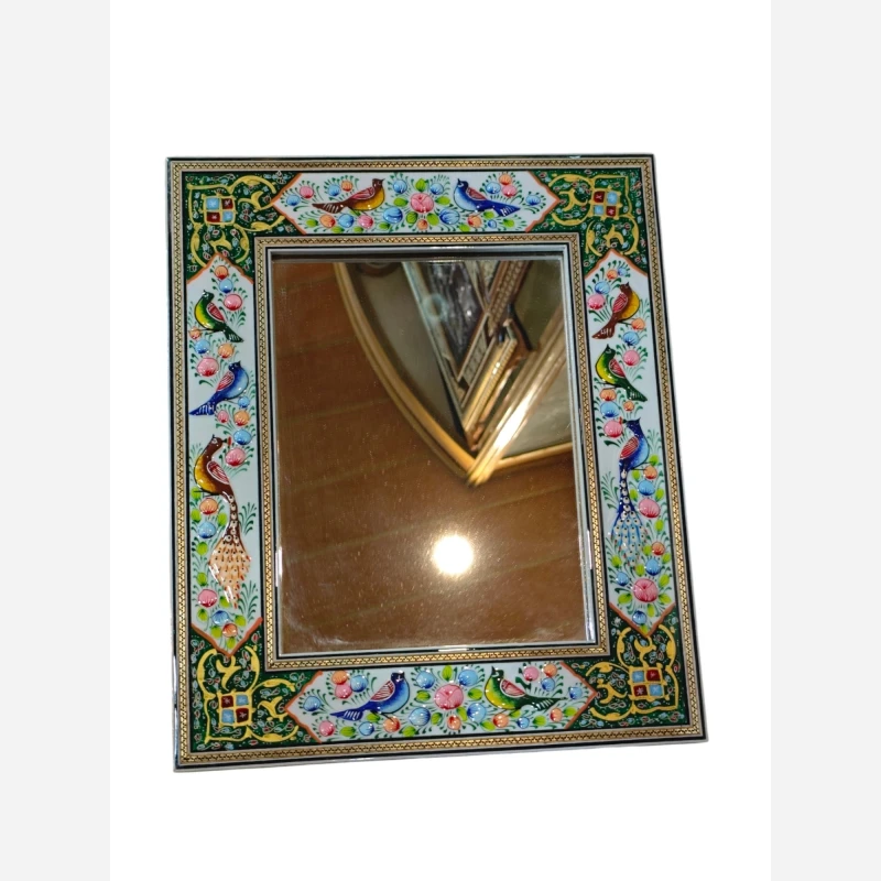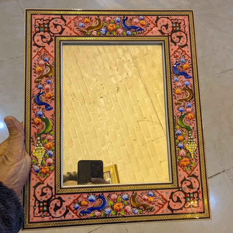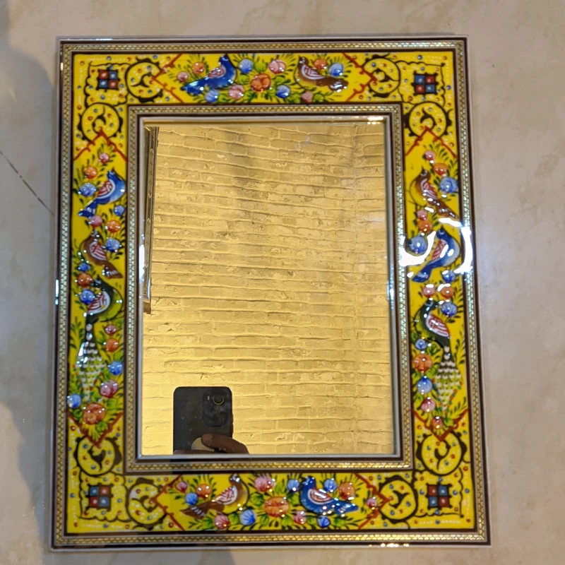 آینه نقاشی مینیاتورگل و مرغ+ خاتم کاری 28در 34