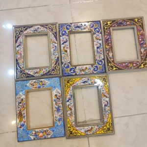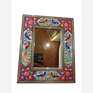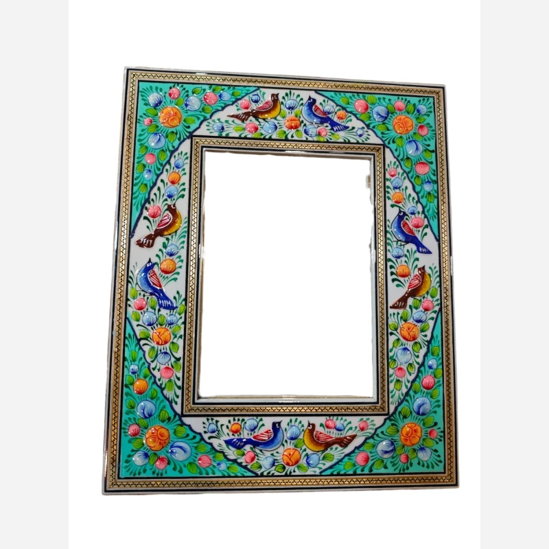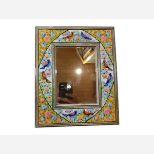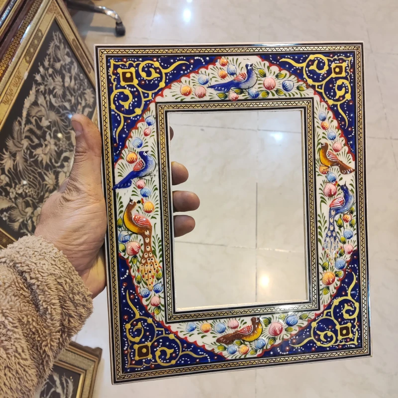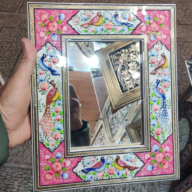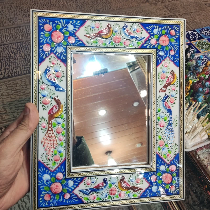 آینه ی نقاشی مینیاتور برجسته +خاتم کاری شده پلی استر بدون سیلر خورده. مناسب برای نصب به دیوار و روی میز