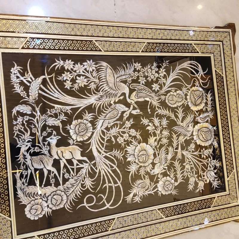 تابلو تمام خاتم کیفیت قاب عالی پر از سیم برنج خاتم کاری شده پلی استر خورده پشت و روی قاب ضمانت قاب تا ۲۰ سال بدون تغییر رنگ