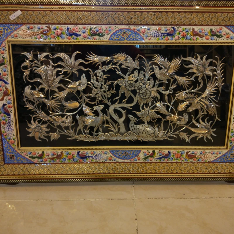 و ارسال رایگانتابلو قلمزنی خاتم+نقاشی مینیاتور گل و مرغ برجسته دور قاب چوب گردو میباشد کیفیت قاب عالی برای دیدن طرح های بیشتر این سایز پیام بدهید.