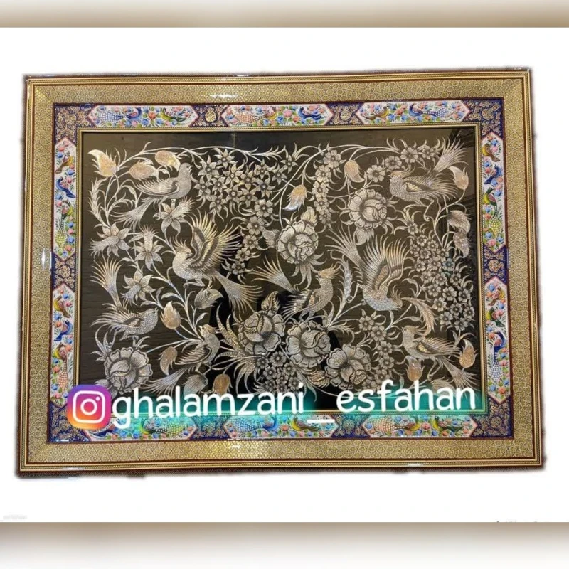 تابلو قلمزنی خاتم+ مینیاتور برجسته شگارکاه دارای پوشش پلی استر جهت دوام در مناطق رطوبت بالا با ضمانت برگشت