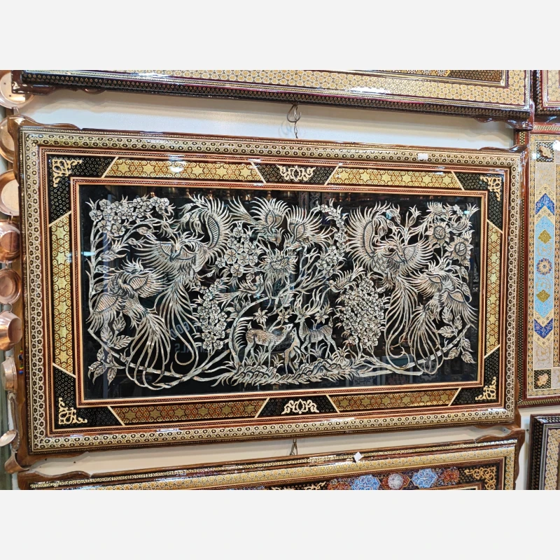 تابلو قلمزنی تمام خاتم ابعاد 100 در 60 جنس قلمزنی مس دارای روکش قلع
