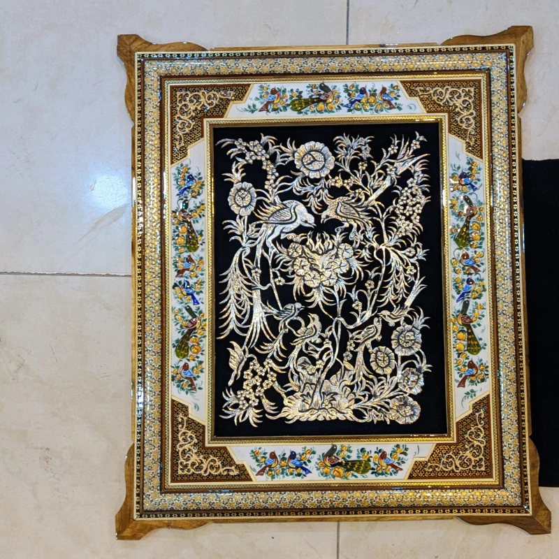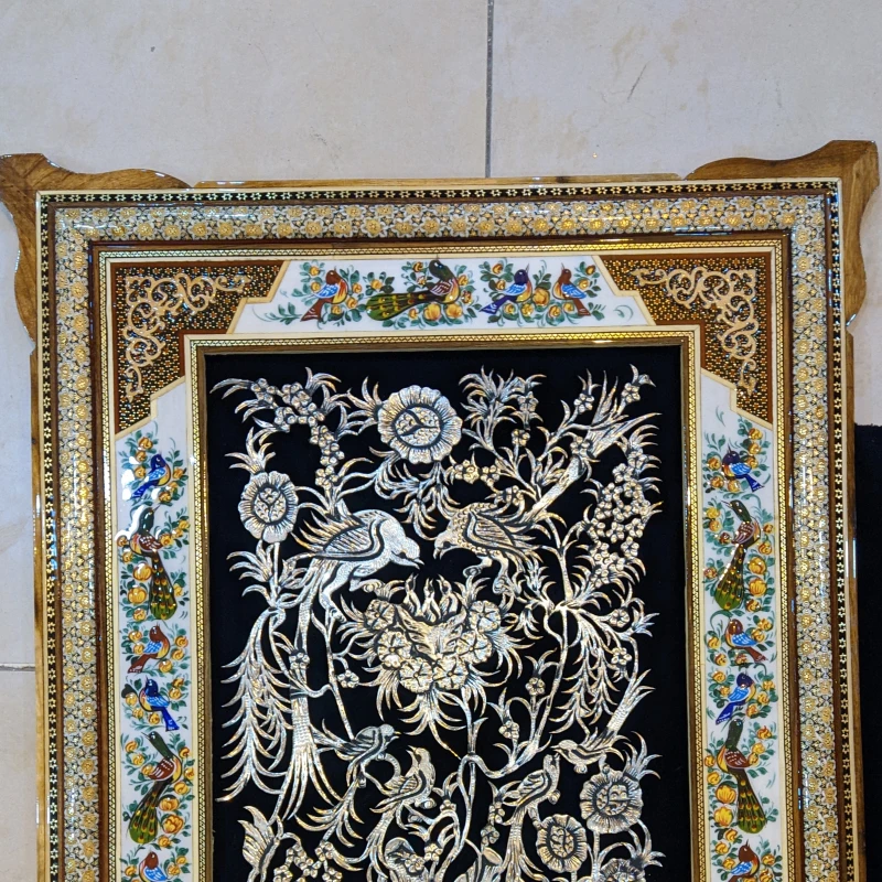 تابلو قلمزنی طرح شلوغ قاب مینیاتور خاتم50 در 60