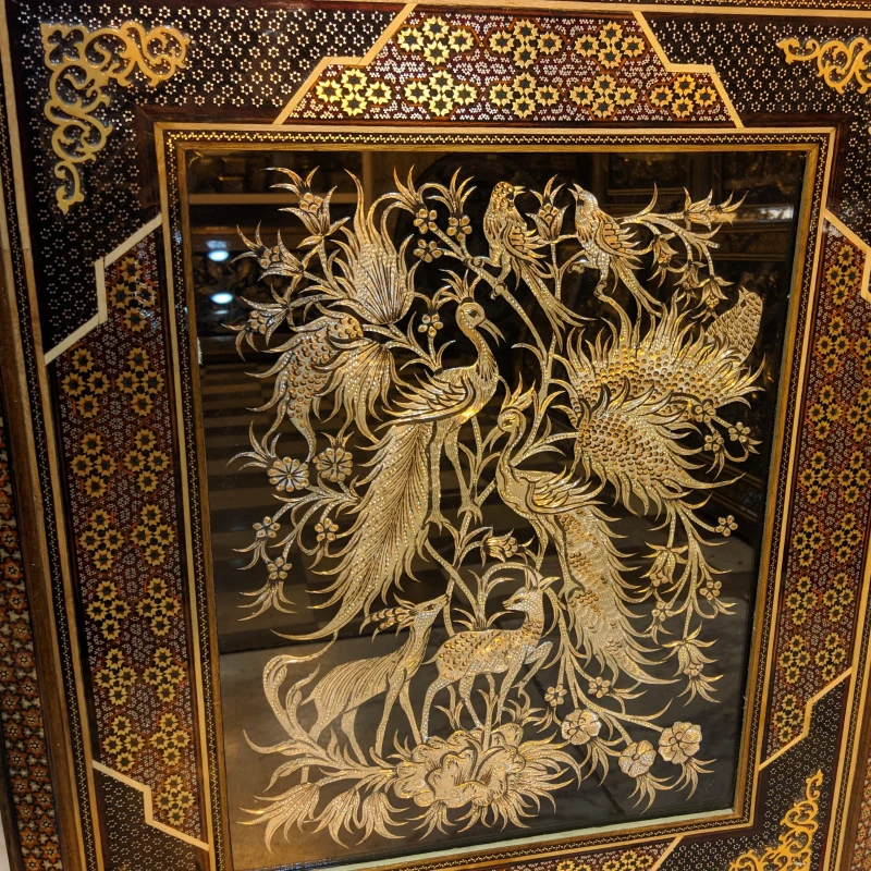 تابلو قلمزنی خاتم صلیبی طرح پرکار و شلوغ .ضمانت کیفیت بدون تغییر رنگ .جنس پلاک قلمزنی مس میباشد