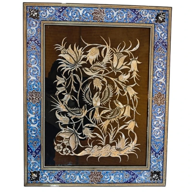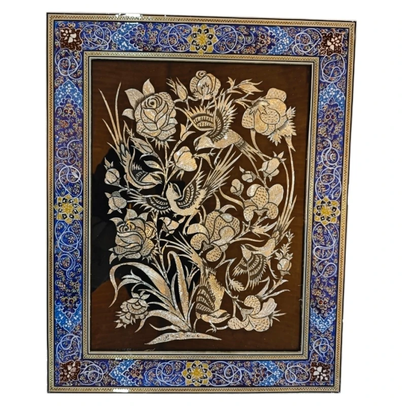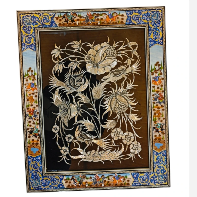 تابلو قلمزنی مینیاتوری دو حاشیه خاتم 50در40