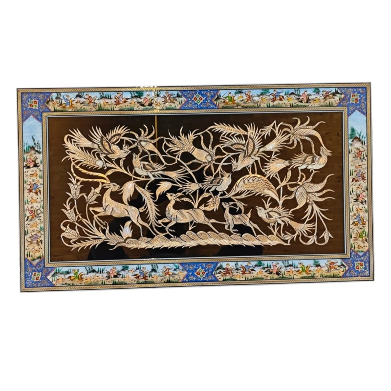 تابلو قلمزنی مینیاتور برجسته شکارگاه و خاتم 40*70