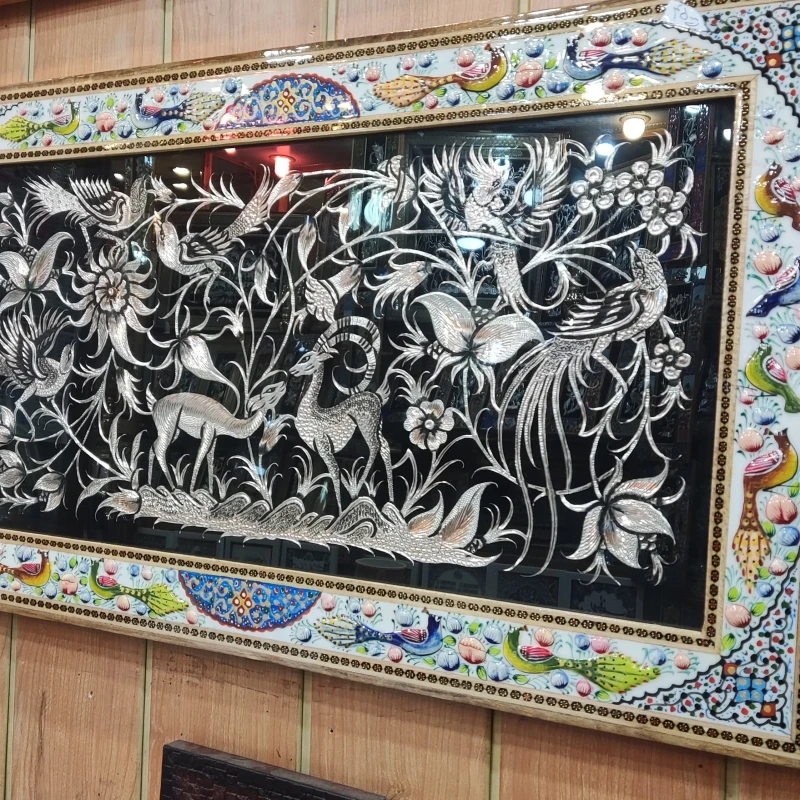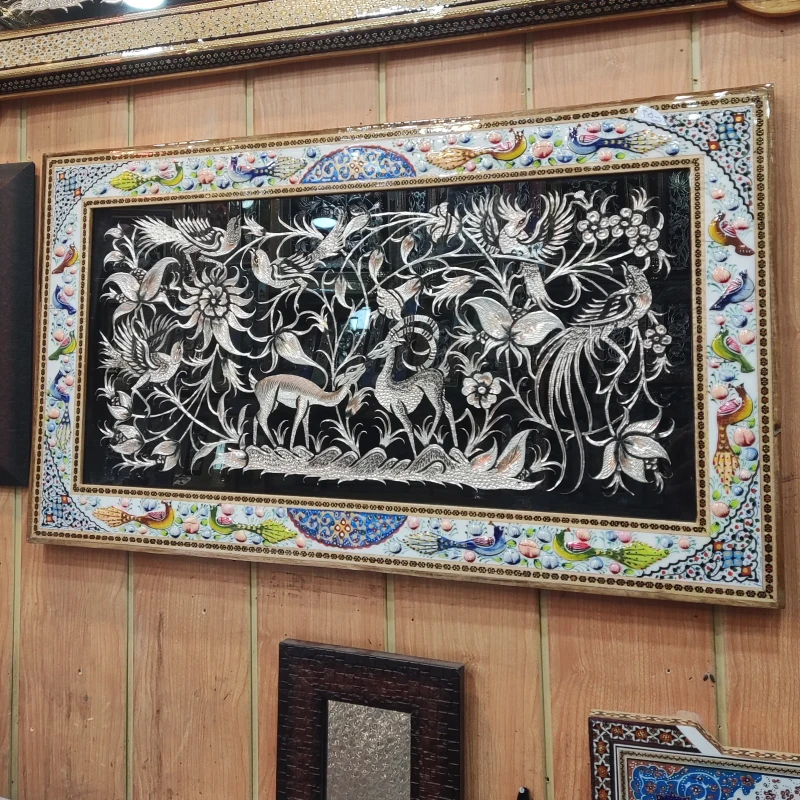 تابلو قلمزنی مینیاتور گل و مرغ برجسته 40*70