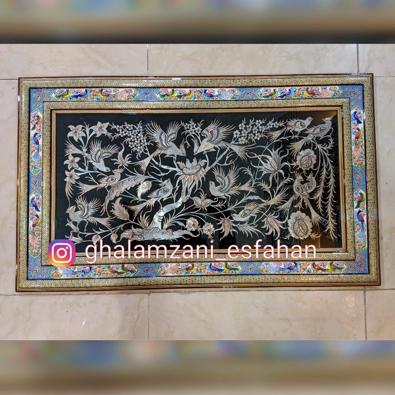 تابلو قلمزنی نقاشی مینیاتور و خاتم ابعاد 100 در 60