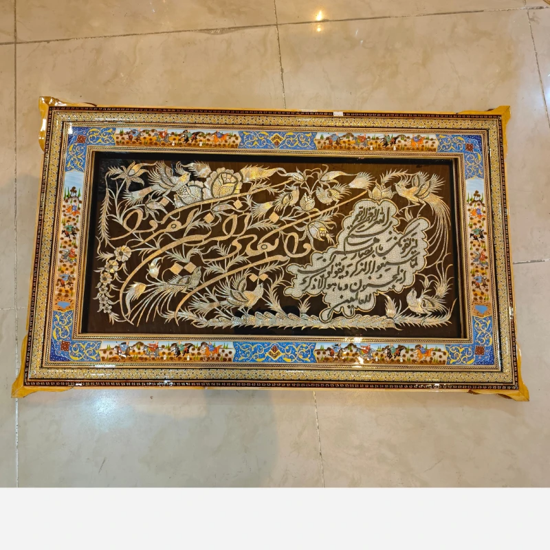 قاب دارای دو هنر خاتم و مینیاتور اسب و شکار است رنگ ثابت دارای پوشش عالی پلی استر