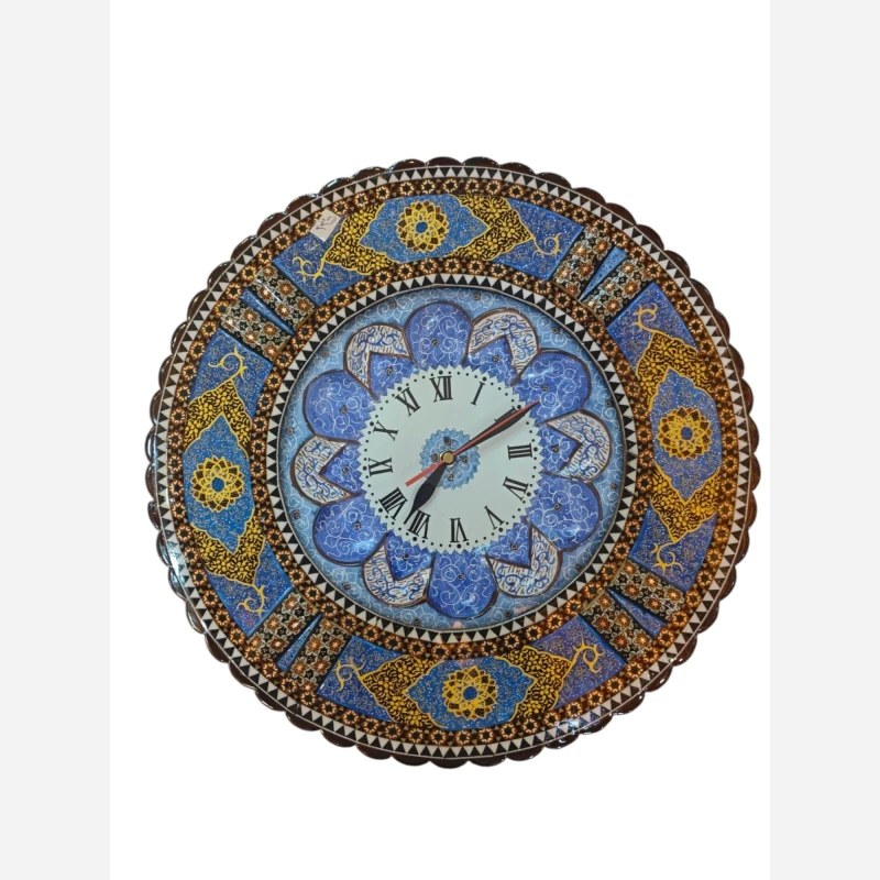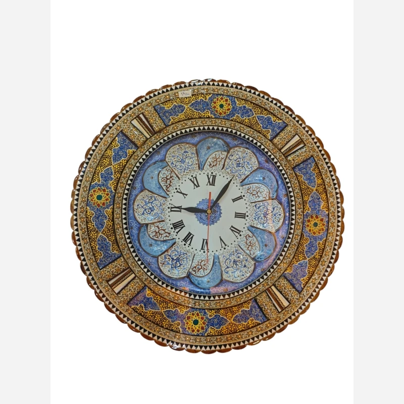 ساعت دیواری تلفیق هنر خاتم +میناکاری+ خاتم کاری موتور ساعت تایوان رنگ ثابت