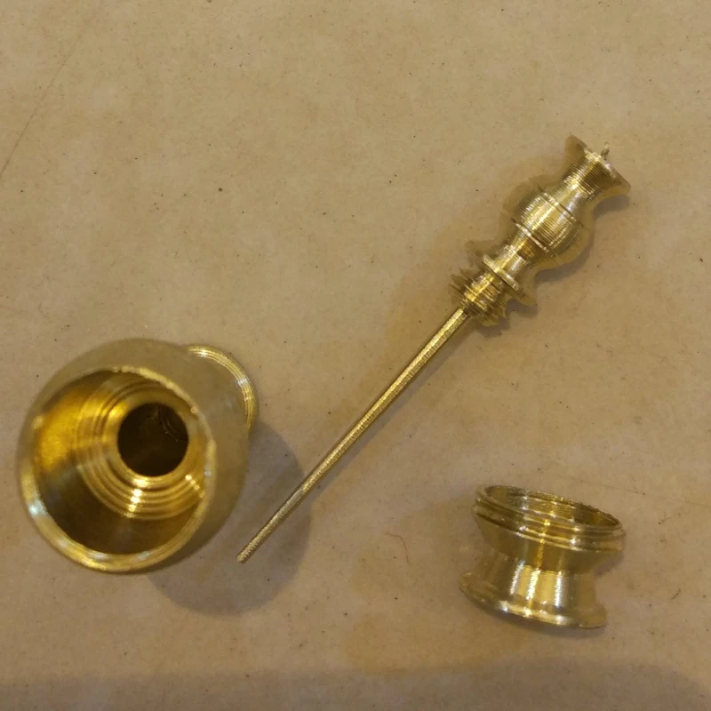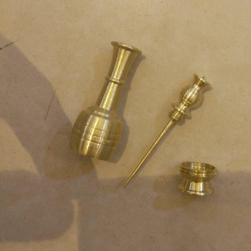 سرمه دان برنجی بزرگ رنگ ثابت هم از بالا پیچ میخوره باز میشه همم از پایین.