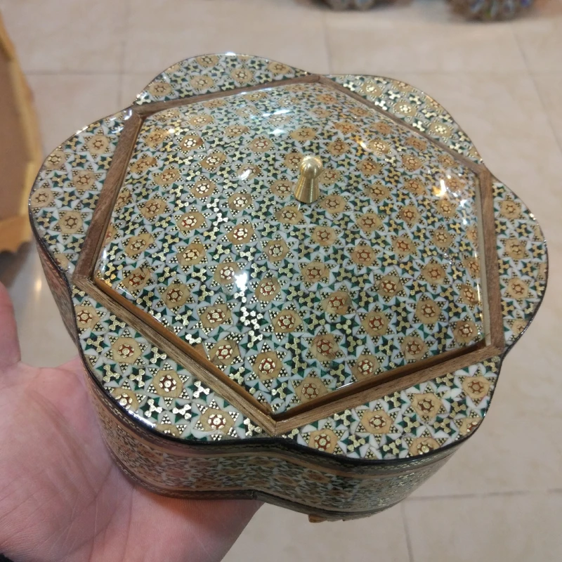 شکلات خوری خاتم کاری شده…پلی استر خورده جهت دوام در رطوبت.کیفیت خاتم خوب و قابل قبول.سایز متوسط و بزرگ موجود میباشد.