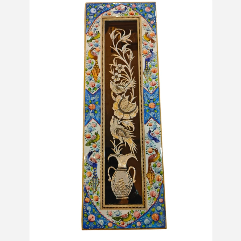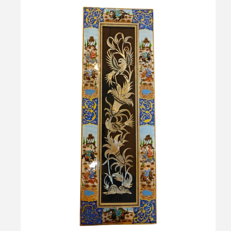 تابلو قلمزنی با نقاشی مینیاتور برجسته گل و مرغ و دوتا حاشیه خاتم.پلی استر خورده جهت دوام در رطوبت.برای دیدن سایر طرح ها پیام دهید