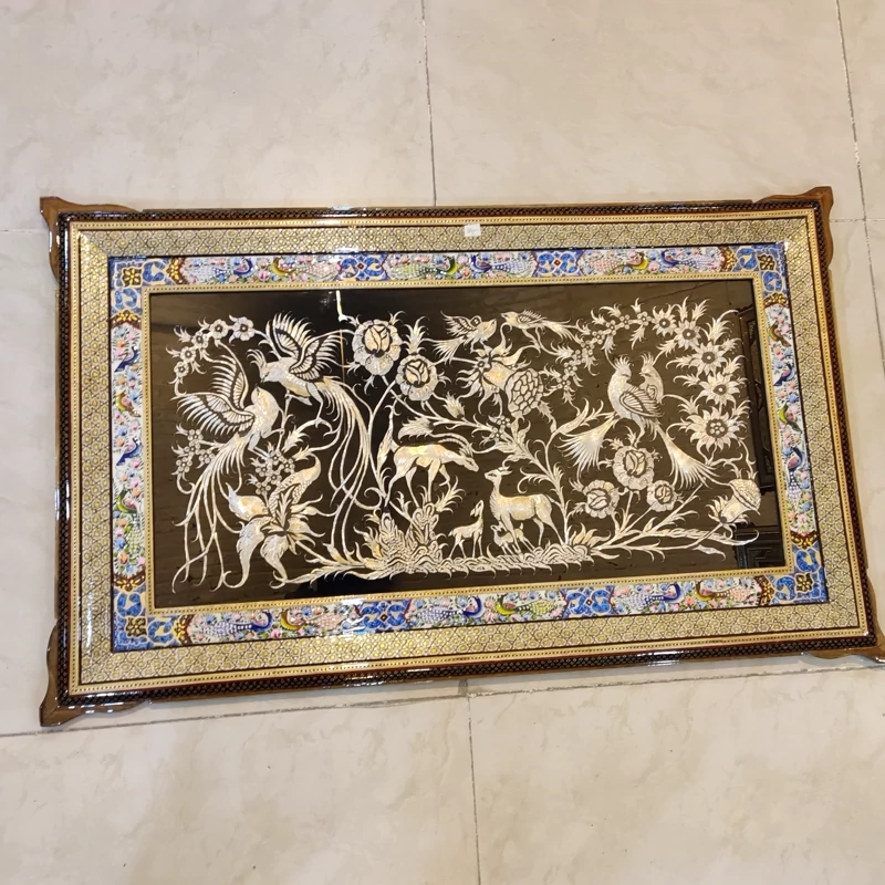 تابلو قلمزنی مینیاتور برجسته گل و مرغ + خاتم کاری سیم برنج و استخوان شتر کیفیت عالی با ضمانت برگشت محصول