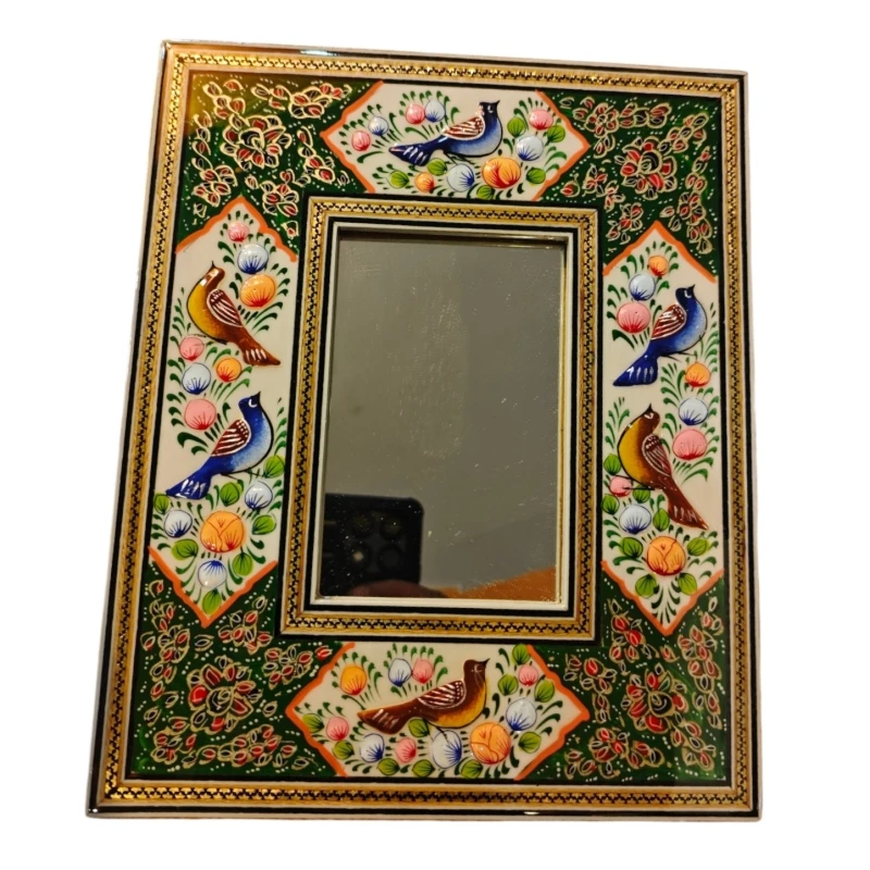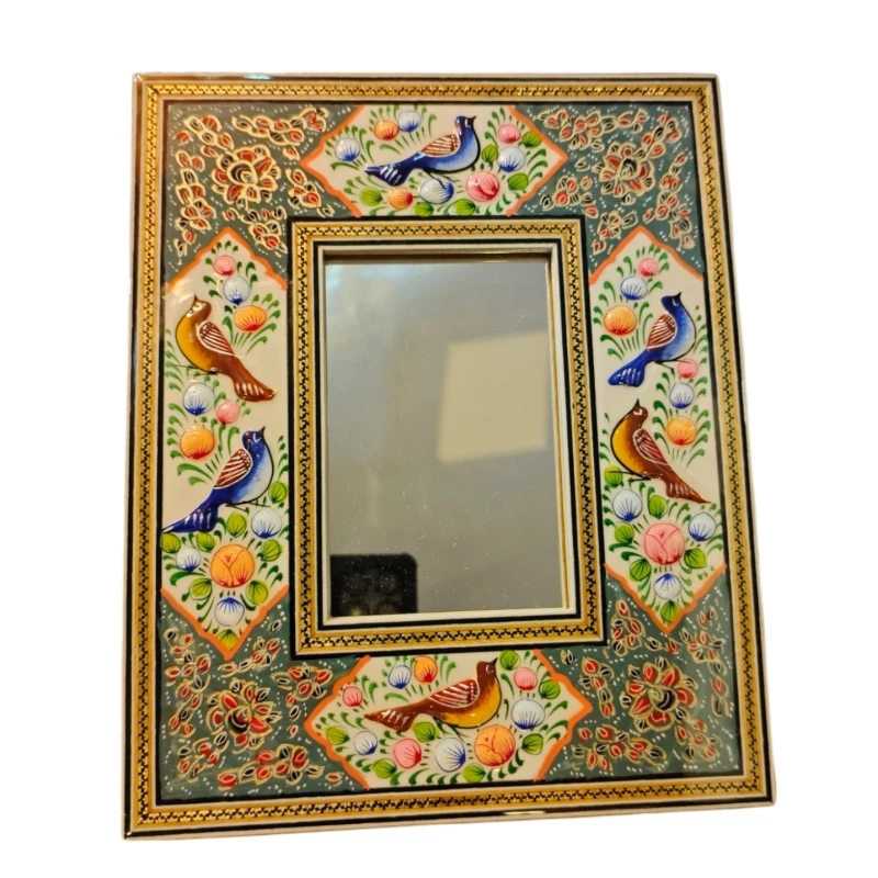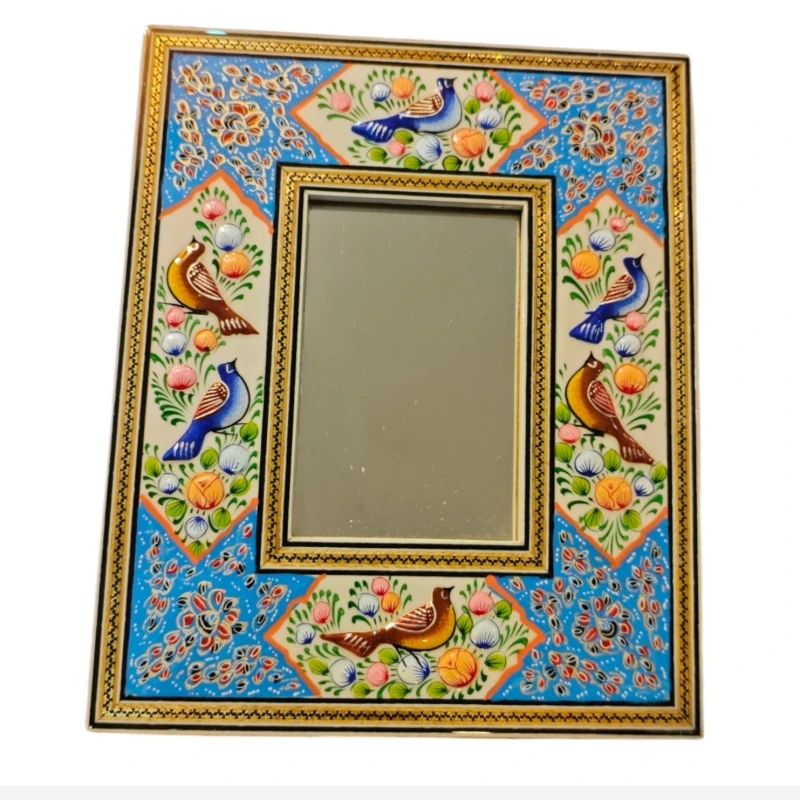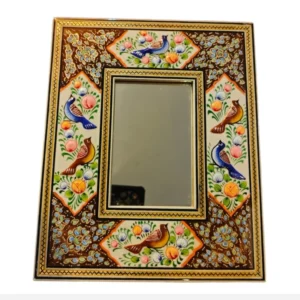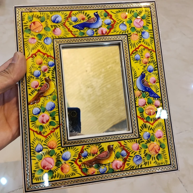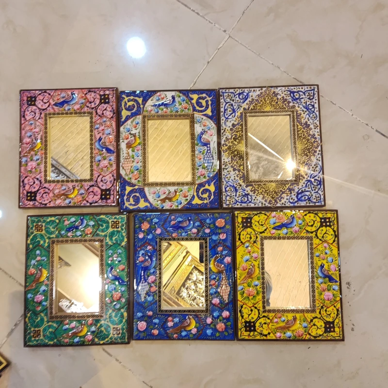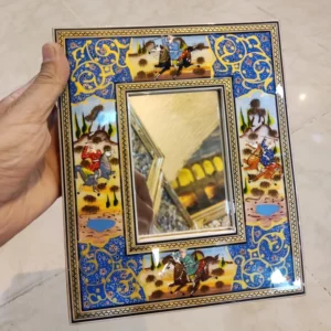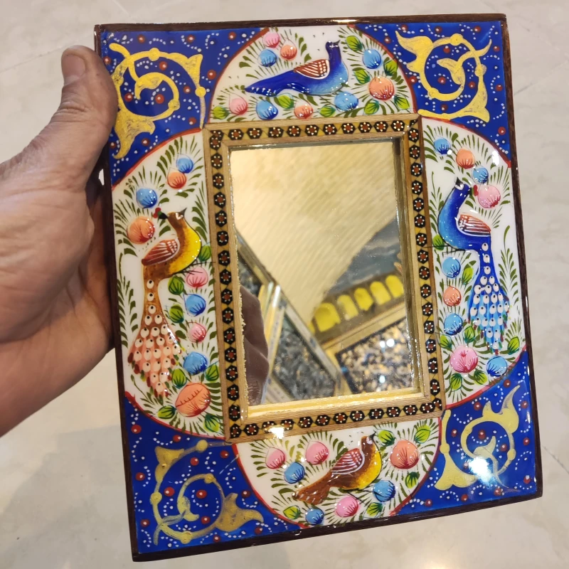 آینه ابعاد کوچک نقاشی مینیاتور برجسته و خاتم کاری شده کیفیت عالی پلی استر خورده شده.