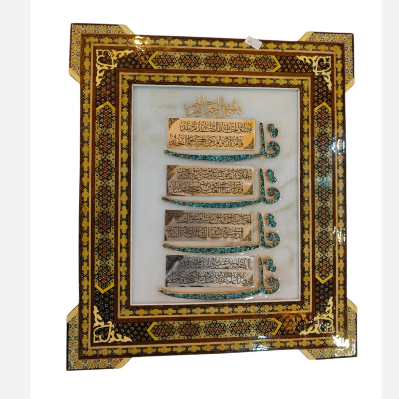 چهار قل فیروزه کوبی با قاب تمام خاتم
